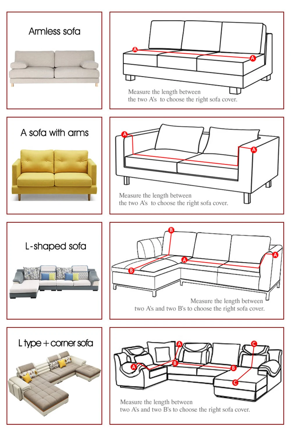 Теплая подсказкаИзмерьте длину каждого дивана и выберите несколько чехлов для дивана в соответствии с длиной, не выбирайте и не выбирайте один чехол для дивана, который может покрыть весь комбинированный диван!Шаги установки крышки дивана