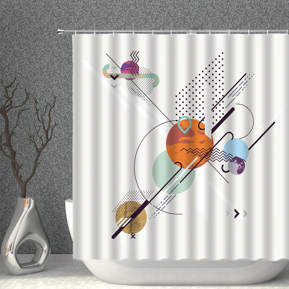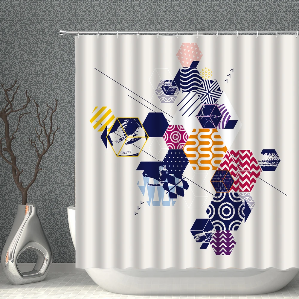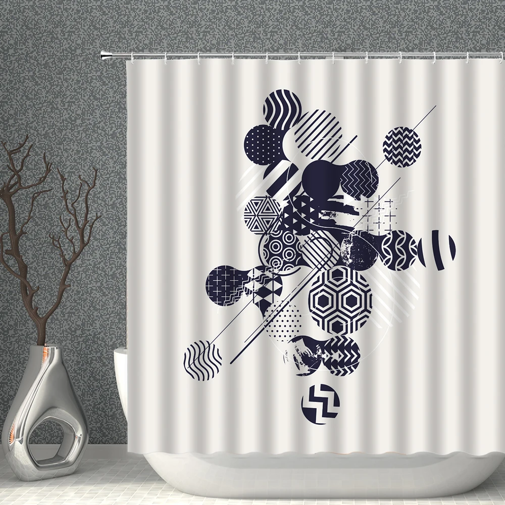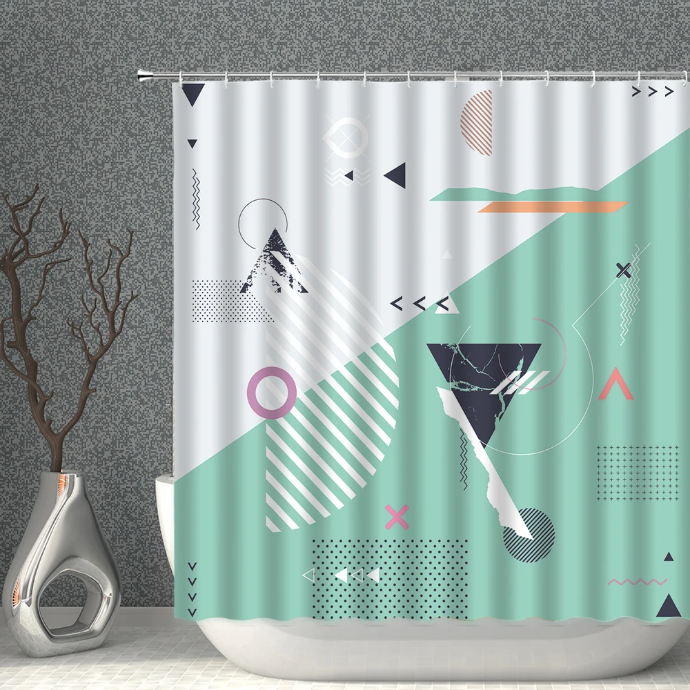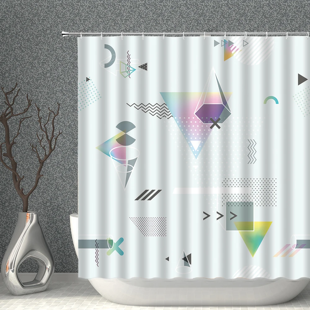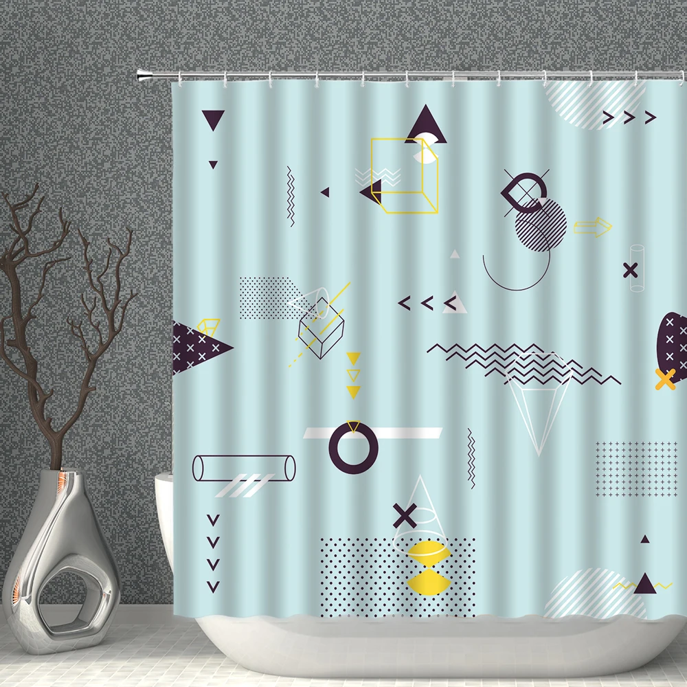Занавеска для душа из полиэстера, водонепроницаемая, с геометрическим рисунком