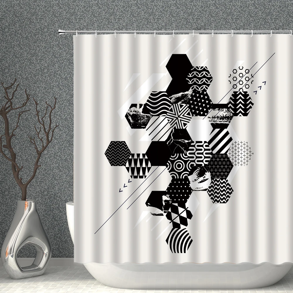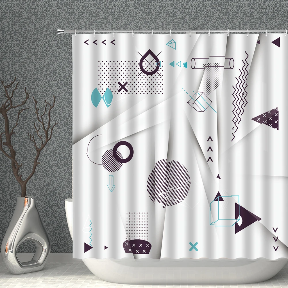 Современная Белая занавеска для душа, водонепроницаемая полиэфирная ткань с геометрическим рисунком, 3DPrint, занавеска для ванны в скандинавском стиле, набор экранов для ванной
