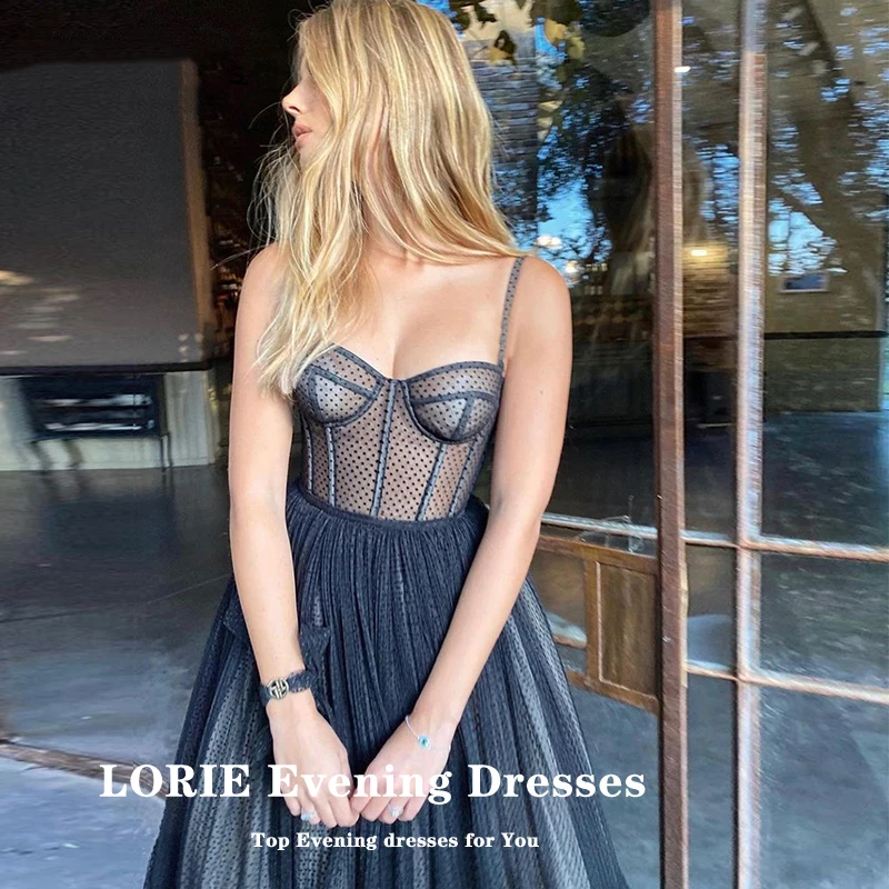 Женское вечернее платье LORIE, черное ТРАПЕЦИЕВИДНОЕ платье в горошек, на тонких бретелях, для выпускного вечера, 2021