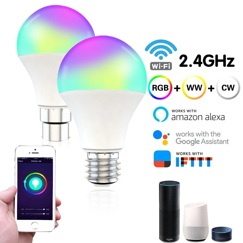 Умсветильник Лампа B22E27 с Wi-Fi, 15 Вт, светодиодная лампа RGB, работает с AlexaGoogle Home, 110-220 В, RGB + CCT, лампочка с таймером и регулируемой яркостью для дома