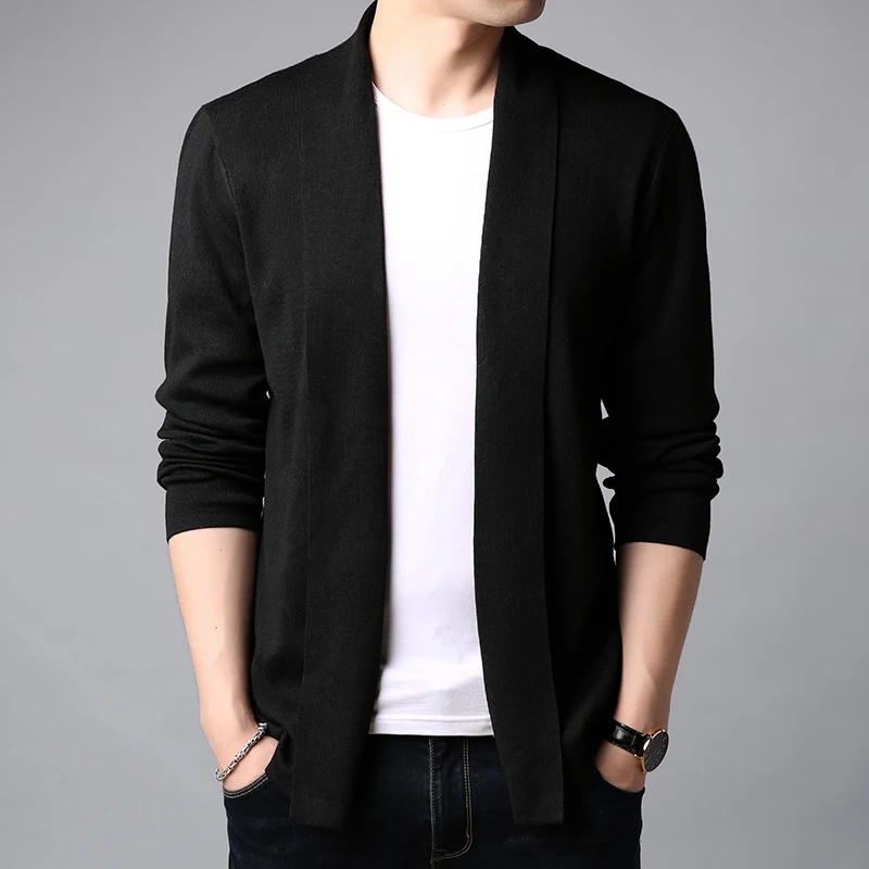 Мужской облегающий кардиган, однотонный вязаный свитер с длинным рукавом, Осень-зима 2020