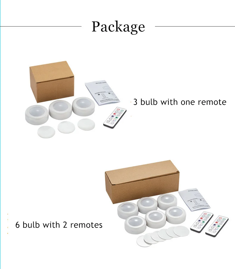 Особенность: Легко устанавливается, может быть установлен в любом месте, где вы хотите осветить; Пульт дистанционного управления позволяет лампе регулировать яркость и время уровня 2, выключая светильник через 30 минут по беспроводной сети на расстоянии до 15 футов; Если вы установите лампу близко, вы можете управлять лампой вместе. Если вы устанавливаете лампу на одном расстоянии, вы можете управлять светом самостоятельно Вы также можете включить/выключить светильник диска, нажав на переключатель на линзе светильник Питание от аккумулятора AAA для беспроводной установки. Подходит для кухонь, шкафов, шкафов, прилавков, книжных полок, гаражей, подвалов или аналогичных темных мест, где может потребоваться постоянное яркое освещение за считанные минуты.