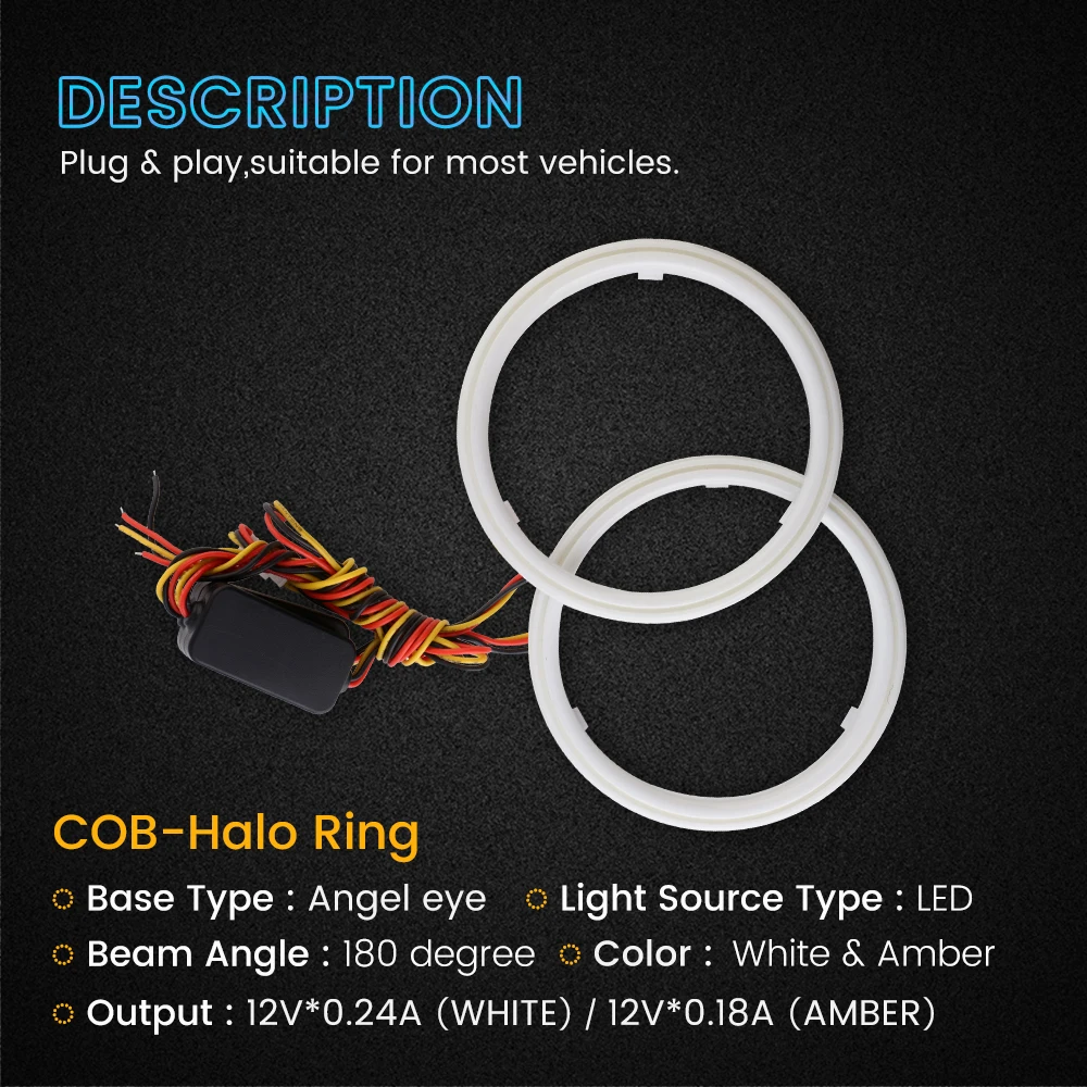 1 пара COB ангельские глазки 60 мм 70 мм 80 мм 90 мм 100 мм 9-30 в галогенные кольца хлопковые огни для светодиодный фары для автомобиля мотоцикла DRL поворотные огни Белый/янтарный