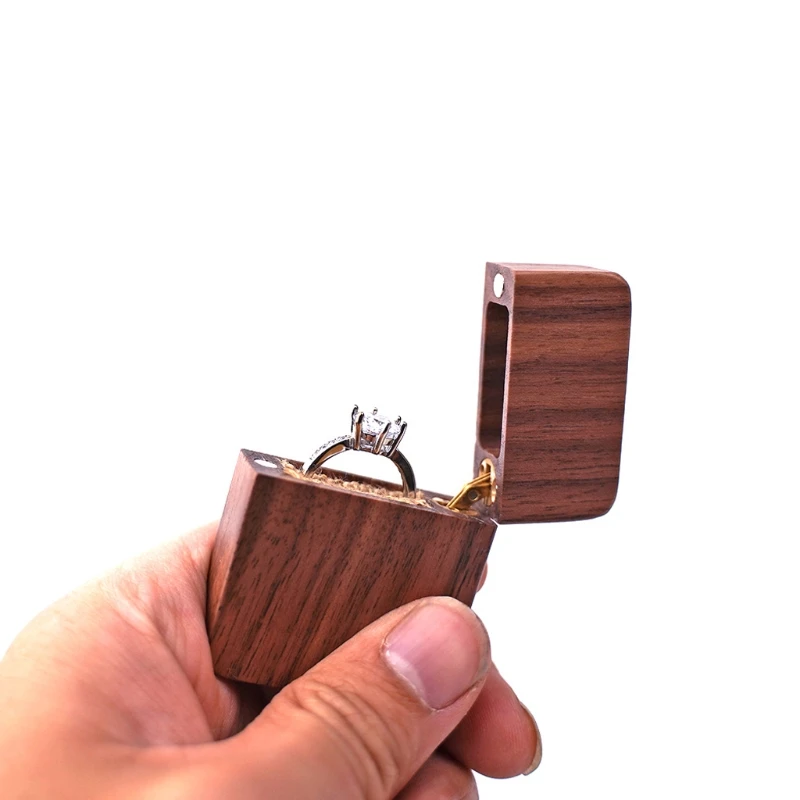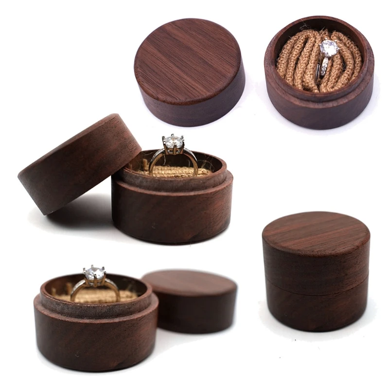 Шкатулка для украшений из орехового дерева, для помолвки, свадебной церемонии, предложение по хранению, портативный держатель для колец, шкатулка для обручальных колец в деревенском стиле