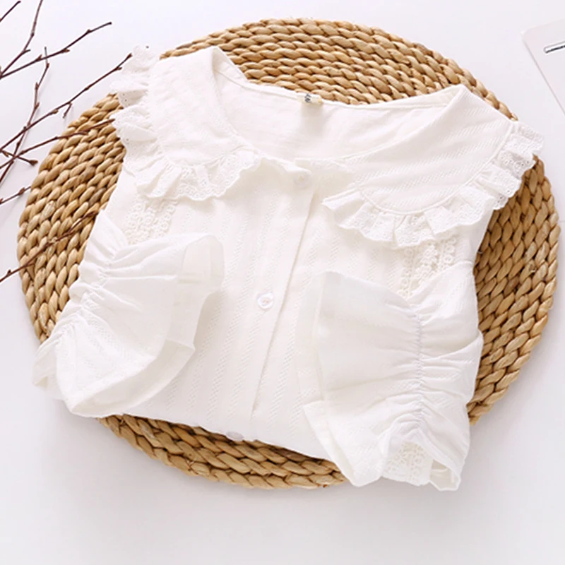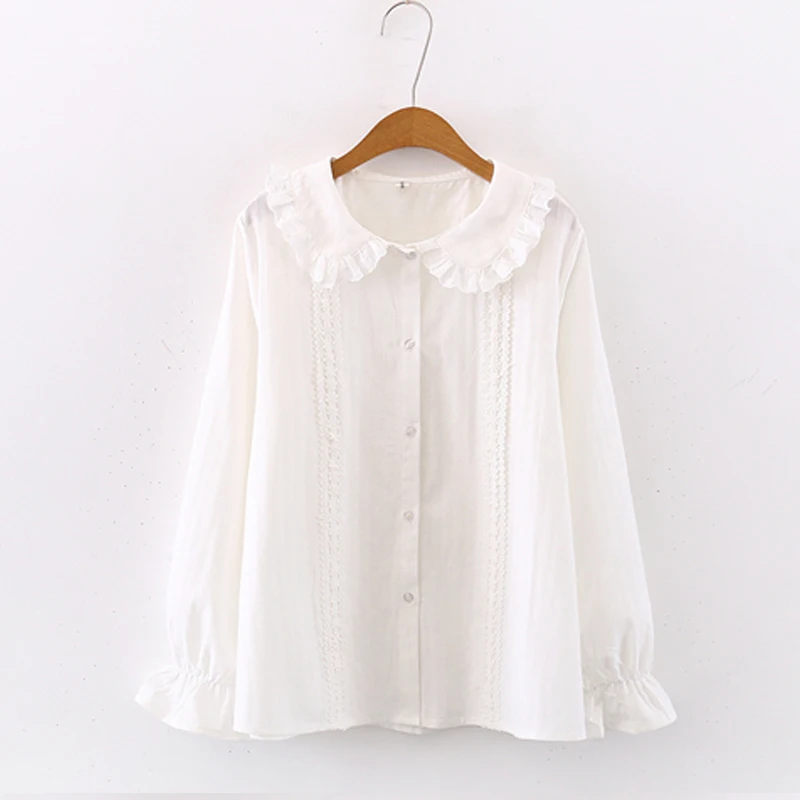 Lamtrip Лолита Питер Пэн кружевная блузка с воротником на пуговицах белая футболка с длинными рукавами и цветочным принтом для девочек