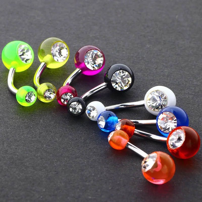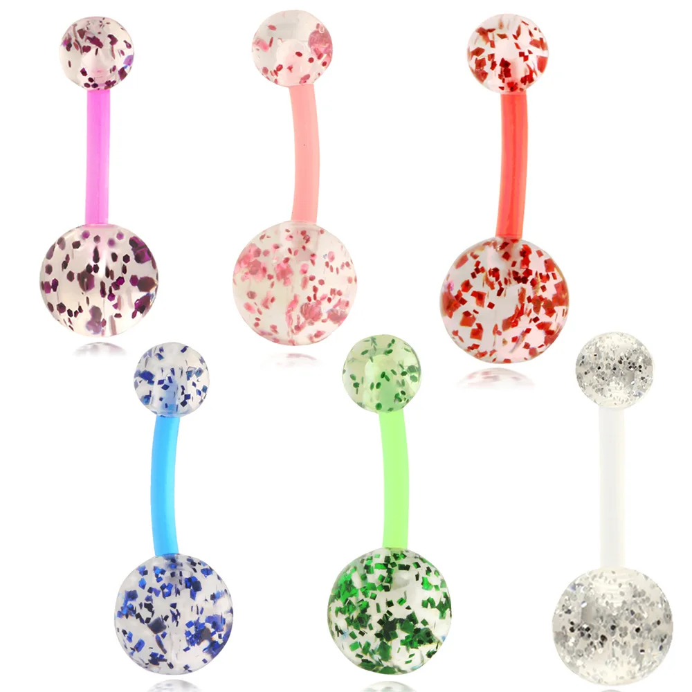 Нержавеющаясталь светятся в темноте Пирсинг живота Lot блеск акриловое кольцо пупка, набор с жемчугом кольцо для пупка оптом пупок пакет