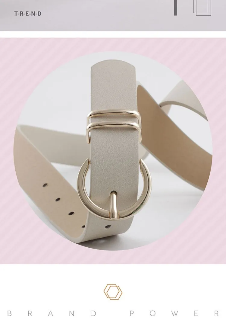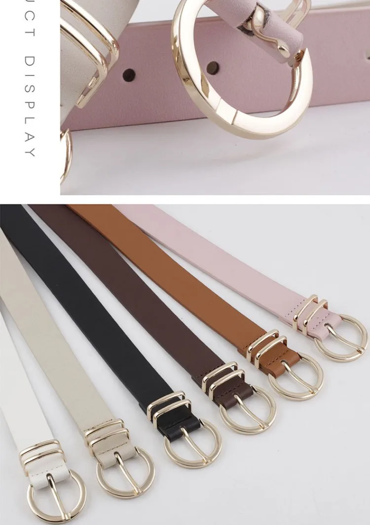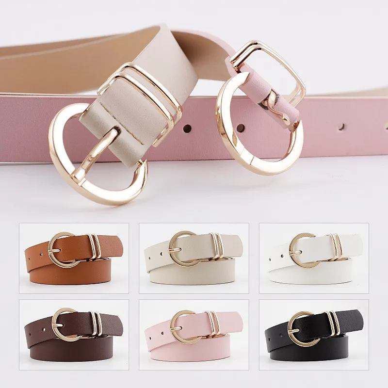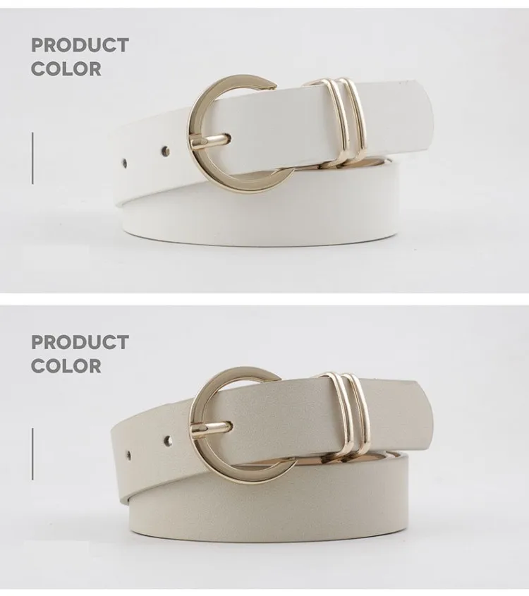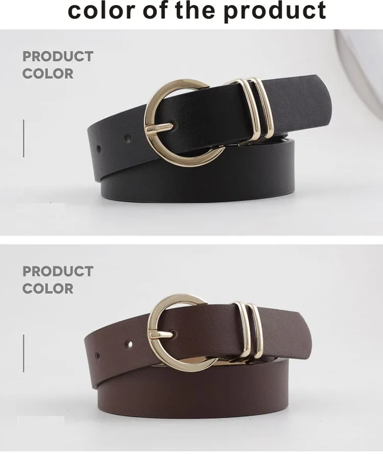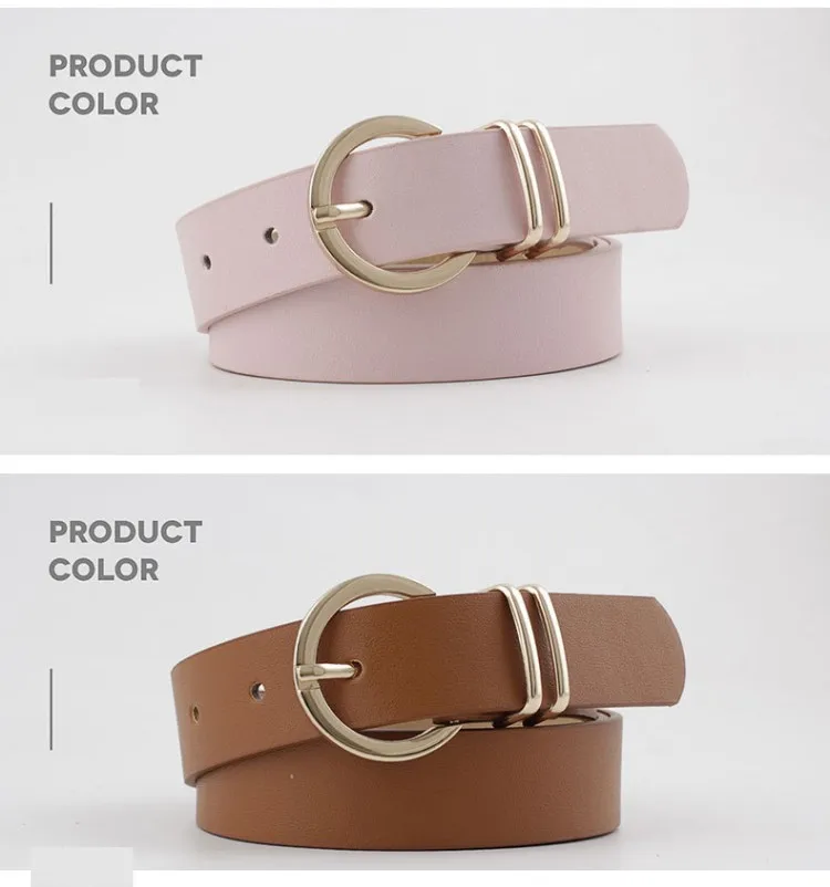 Ремень кожаный женский с круглой пряжкой, Модный классический пояс ...