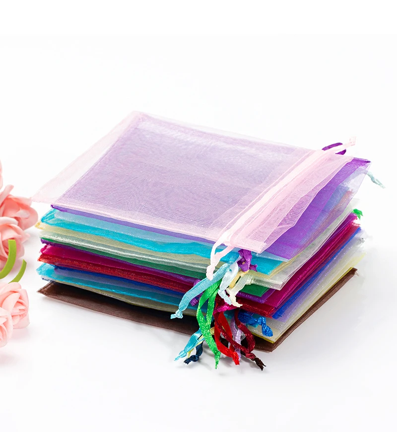 50 шт. вуаль упаковка мешок красочные для детей на новый год, день рождения, Рождество, Свадебная вечеринка шифон мешочки для ювелирных изделий из органзы