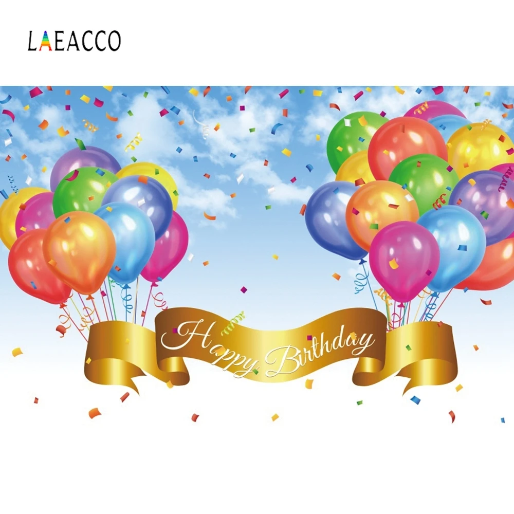 Laeacco День рождения баннер фоны голубое небо белые облака красочные шары Baby Shower пользовательские фотографии фоны фотозона