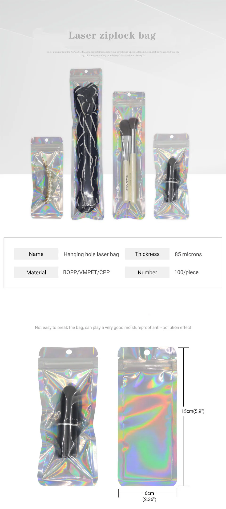 100 шт. голографические пакеты с застежкой-молнией, прозрачная Лазе...