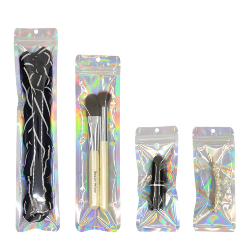 100 шт подарочные сумки голограмма алюминиевая фольга на молнии сумки длинные пластиковые лазерные Висячие Сумки для часов Ювелирные изделия Косметическая оконная упаковка сумка