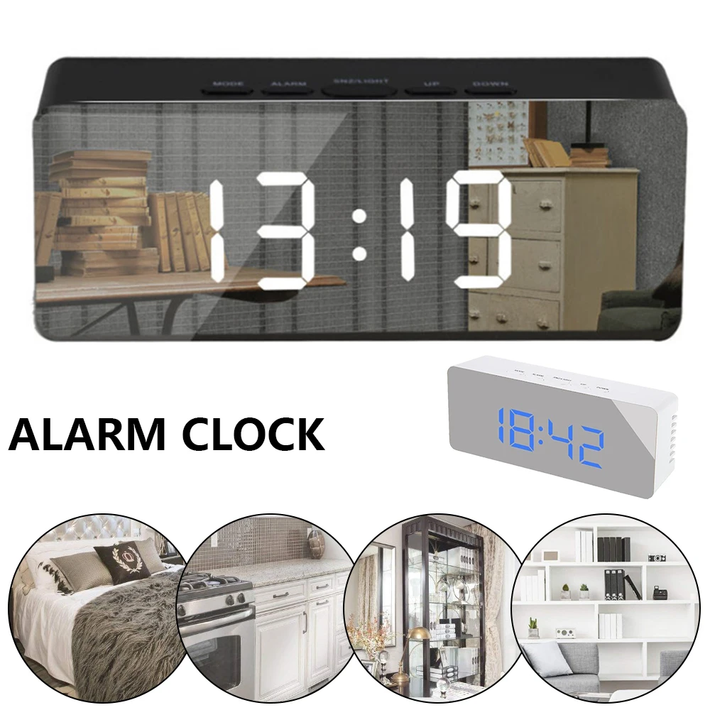 Светодиодный цифровые часы Дисплей зеркальные часы-будильник Повтор Настольные часы Wake Up светильник Электронные большие временные Температура украшение дома