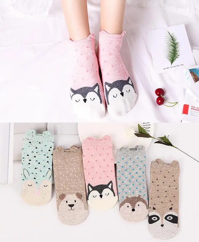 Короткие женские хлопковые носки, 5 пар, весна-лето, носки с ушками