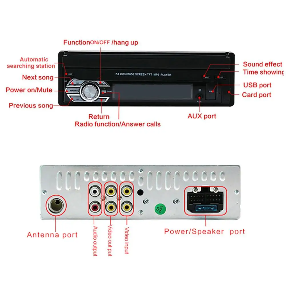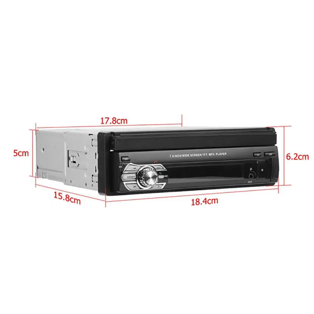 9601 7 дюймов Bluetooth автомобильный FM Радио Аудио Видео плеер MP5 плеер с зеркалом заднего вида КамераХарактеристики:Функция Bluetooth (ответить/сделать телефонные звонки, воспроизведение музыки).Поддержка функции заднего хода (камера опционально).Видео вход: Поддержка видео-дисплея камеры DVR автомобиля.7 дюймовый резистивный сенсорный экран может быть сложен.RDS AM/FM радио.Поддержка картридера, u-диска (аудио/видео/Воспроизведение изображений).Функция AUX.Улучшенный микрофон, более четкий телефонный звонок.Тип: Автомобильный MP5 плеерМатериал корпуса: металл + пластикСистема: WinceЧип декодера: C500Размер экрана: 7 "резистивный сенсорный экранРазрешение экрана: 1024*600Кнопка светильник: в наличии 7 цветов, светильникВремя Системы: 12-часовом формате/24-часовой Системы регулируемыйВремя работы в режиме ожидания: не поддерживаетсяМобильный телефон: Поддержка AndroidМобильный телефон зарядка: Поддержка Android мобильный телефон зарядкаРадиосвязь: FM1/FM2/FM3/AM1/AM2Радиочип: QN8035RDS: ПоддержкаOBD: не поддерживаетсяМульти-Язык: китайский/английский/испанский/португальский/русский/итальянский/немецкий/французский/Польский/ТурецкийВидеовыход: 2 канала видеовыхода (не поддерживает двойной экран).Реверсивный Видео вход: ПоддержкаПароль подключения Bluetooth: 0000 (для нескольких мобильных телефонов может потребоваться пароль).Функция напоминания о тормозе: ПоддержкаФункция управления рулем: ПоддержкаBluetooth: Bluetooth 4,0Чип усилителя: TDA7388Радиочастота: 87,5-108,0 МГц, 522-1620 ГцСлот для карты памяти: для карты памяти TF (не входит в комплект)Слот для карты GPS: нетUSB порт: 1 x USB2.0RCA терминал Введение: 2 канала видео выход, 1 канал Реверсивный вход 2 канала аудио выход, 1 канал видео входПередний Aux аудио вход: поддержкаРегулятор громкости: ПоддержкаПоддерживаемые Аудиоформаты: MP3/WMA/WAV/APE/FLACПоддерживаемые форматы видео: RM/RMVB/AVI/MP4/MKV/3GP (с разрешением до 720P)Поддерживаемые форматы изображений: JPGДлина: 18,4 см/7,24 ", Ширина: 15,8 см/6,22", высота: 6,2 см/2,44 "(прибл.)Примечания:Благодаря светильник и экрана Цвет Товара может быть s светильник ly отличается из-за характеристик монитора компьютера.Возможны незначительные отклонения в размерах из-за различных измерений вручную.Посылка включает в себя:1 х Автомобильный MP5 плеер1 х Кабель питания1 пульт дистанционного управления1 x Руководство пользователя1x4-светодиодный/8-светодиодный зеркало заднего вида Камера (опционально)