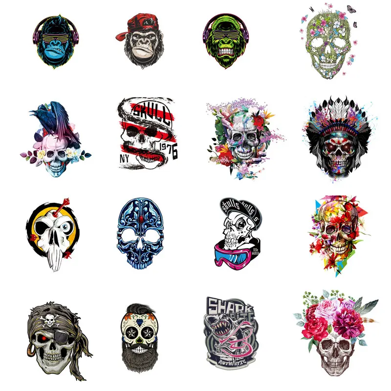 В форме черепа стикер в стиле панк передачи тепла Переводные железные пресс для футболок Термальность наклейки теплопроводная поливинилхлоридная для аппликация на одежду