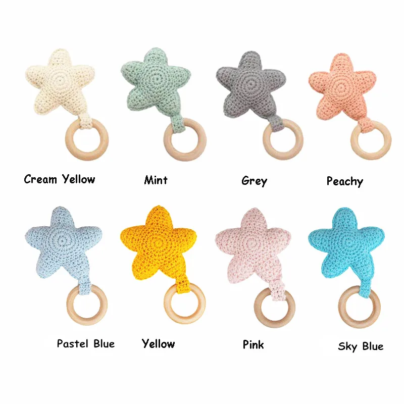 Chenkai 10 шт. вязание крючком Звезда натуральное дерево кольцо детский Прорезыватель пищевой класс Сделай Сам деревянная пустышка Прорезыватель цепь захватывающая игрушка