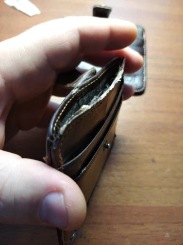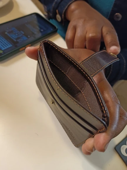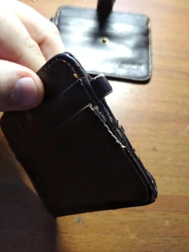 Сильно широкий для карт из за этого не смотрится и некоторые отделы глубокие карта проваливается и неудобно доставать из за этого он порвётся потому что не кожа