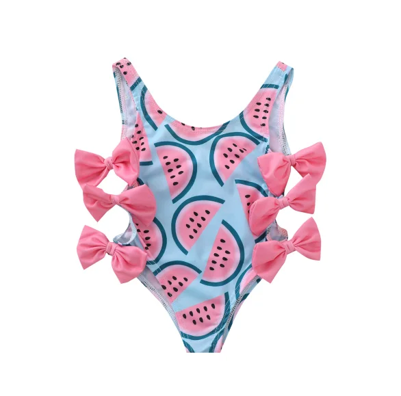 Одежда для малышей и детей, Цельный купальник для новорожденных, U-образный купальник для маленьких девочек с принтом арбуза и бантом