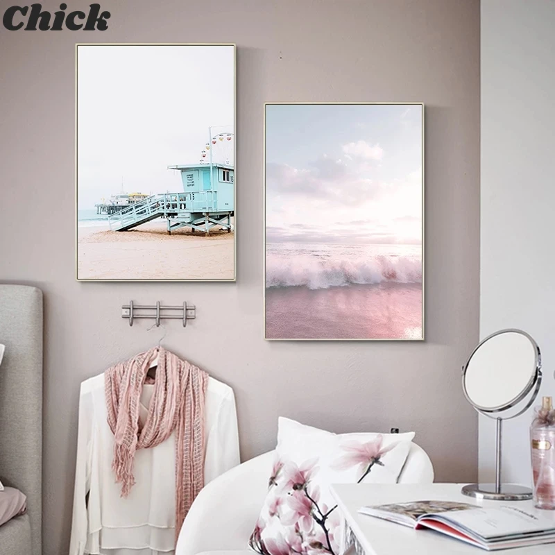 Городской морской закат настенные картины для спальни пейзаж розова...