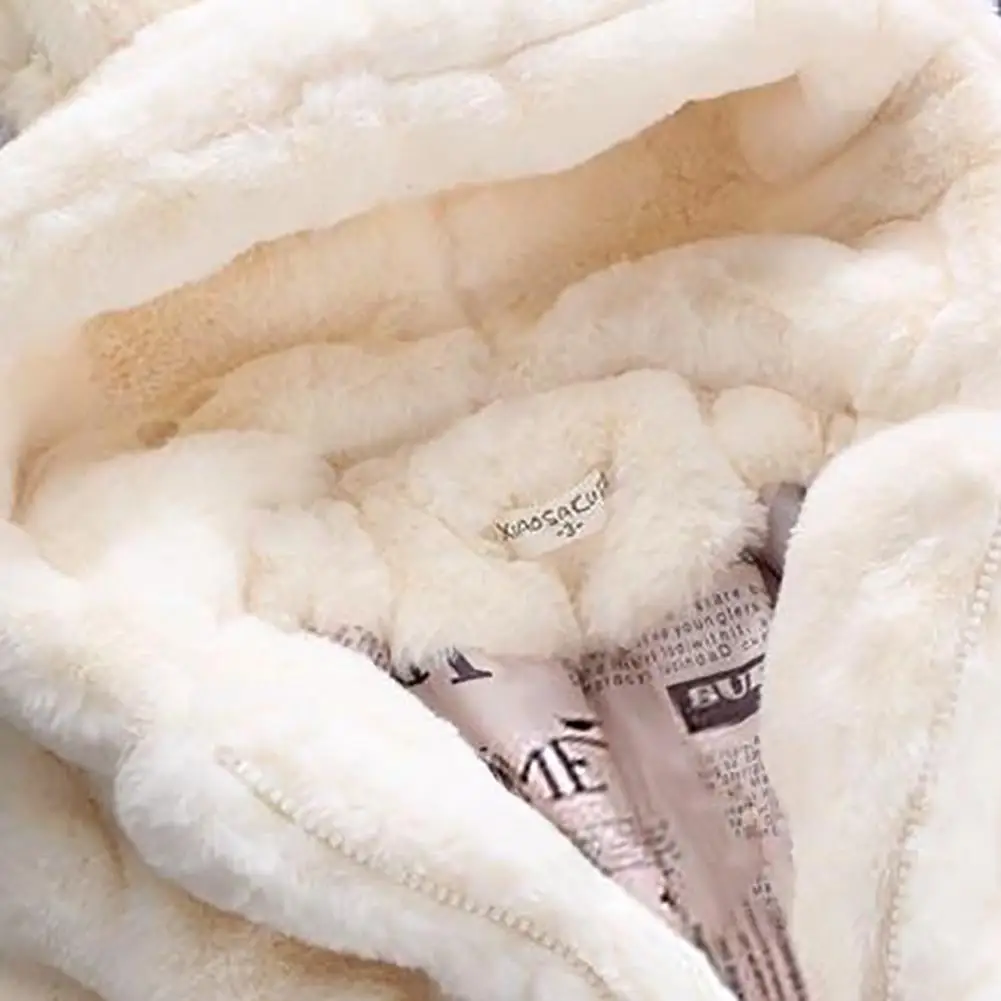Зимнее пальто для девочек, куртки с подкладкой из искусственного ли...