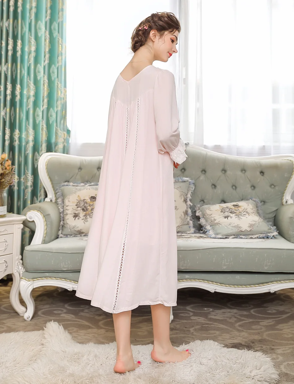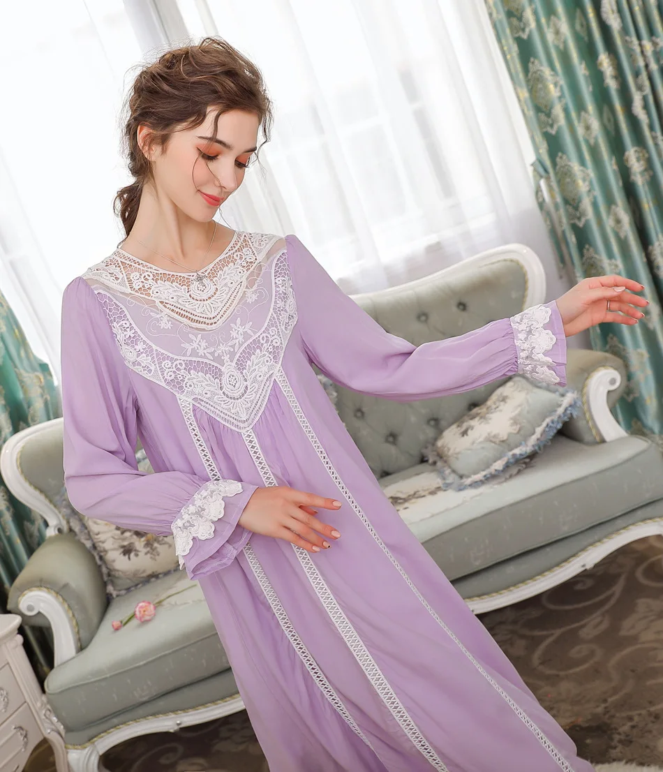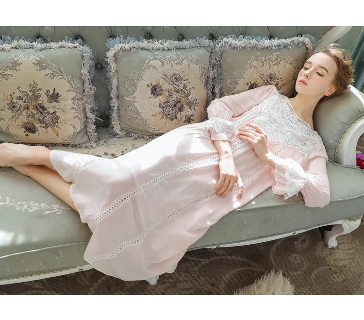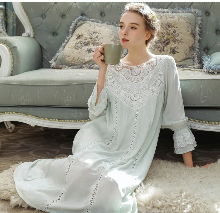 Женская ночная рубашка, кружевное хлопковое ретро платье с длинным ...