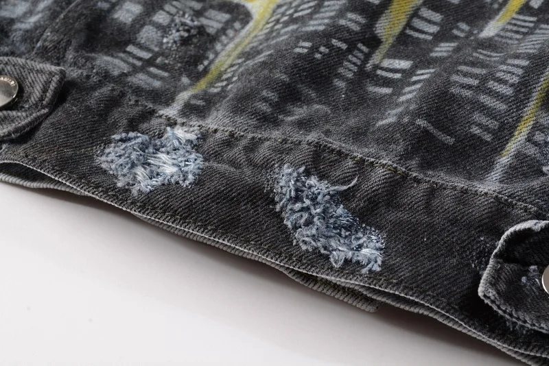 Мужская Байкерская джинсовая куртка, черная джинсовая куртка в стил...
