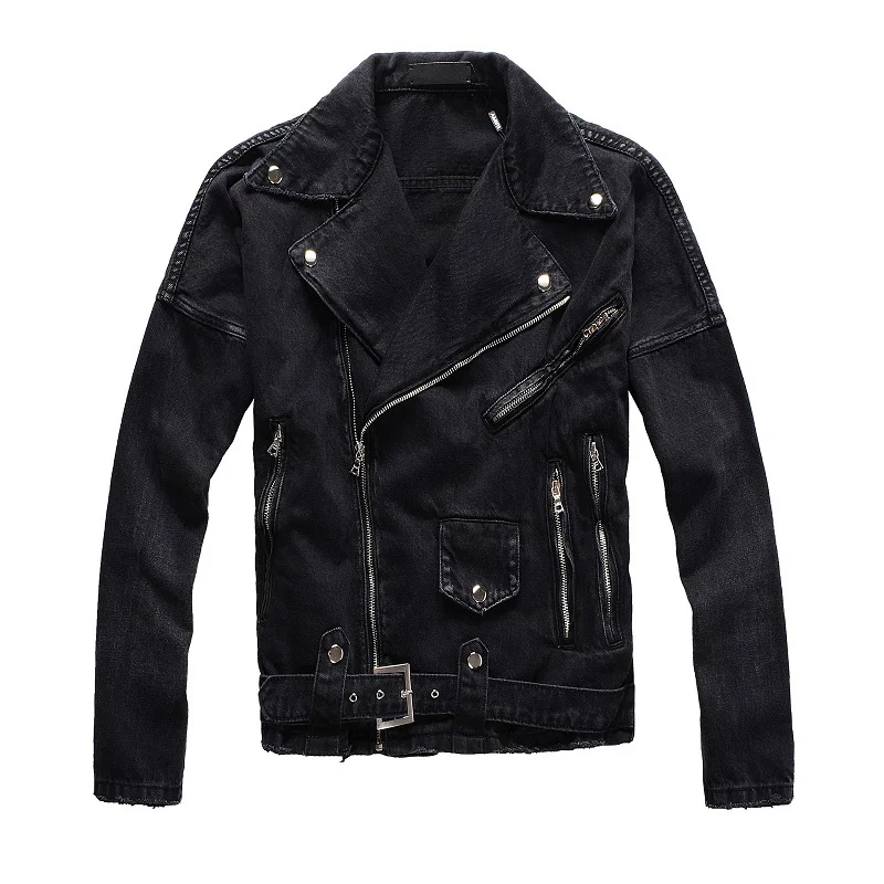 Модная Черная байкерская джинсовая куртка в стиле панк, Мужская джи...