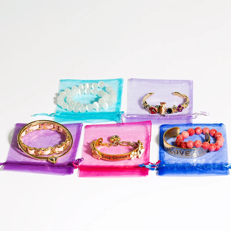 50 шт. упаковочный пакет красочные для детей на новый год, день рождения, Рождество, Свадебная вечеринка шифон мешочки для ювелирных изделий из органзы, тюль