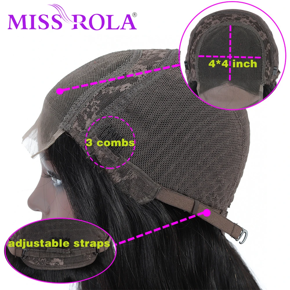 Прямые волосы Miss Rola, Короткие парики из человеческих волос, 4*4, парики из малайзийских волос без повреждений, плотность 150%, 180%, предварительно выщипанные