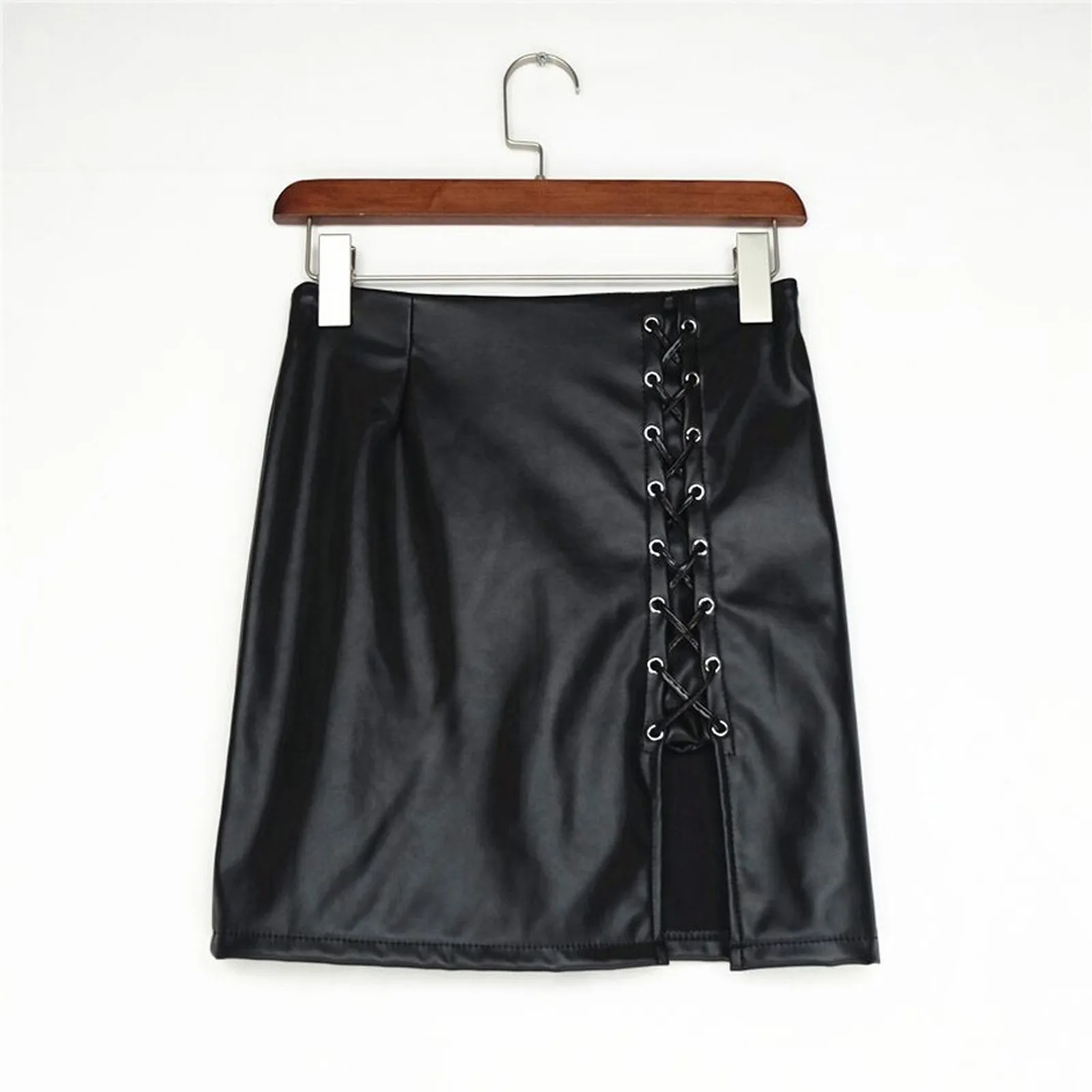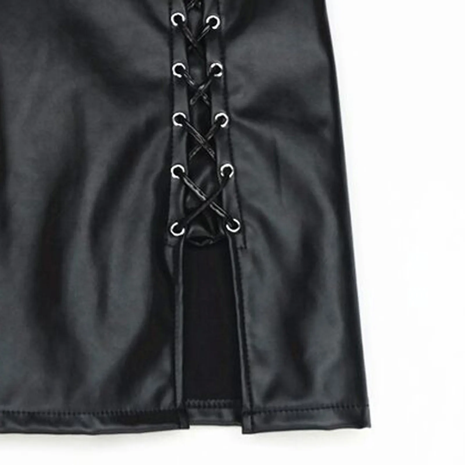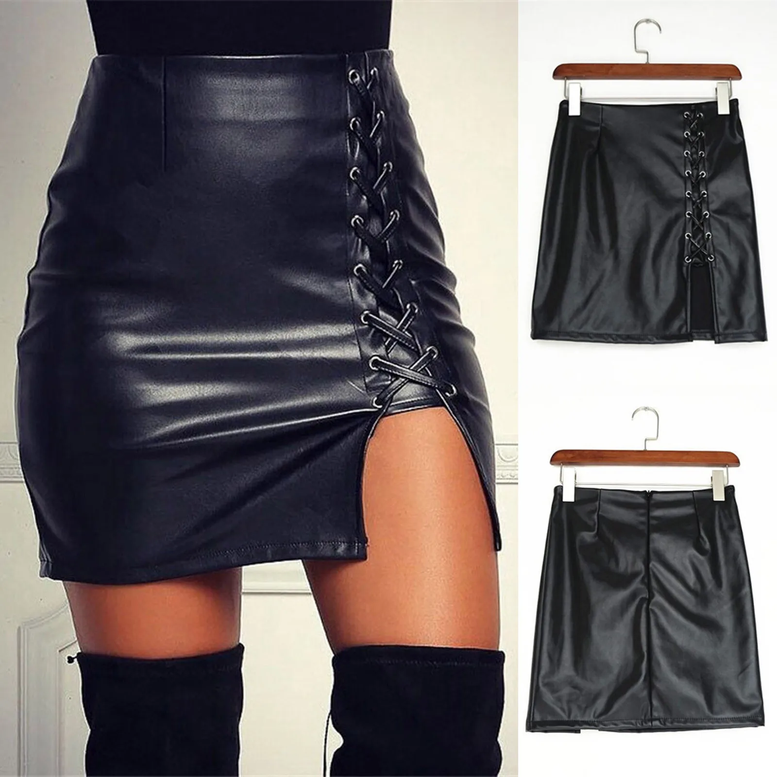 Номер моделиFashion Women Sexy Solid Bandage Short Skirt High Waist Faux Leather