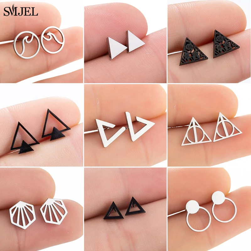 Серьги-гвоздики женские, мужские, из нержавеющей стали, с несколькими треугольниками