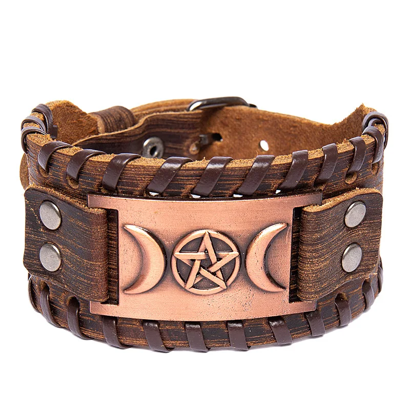 Браслет с компасом мужской, широкий кожаный Ретро Браслет с кельтск...