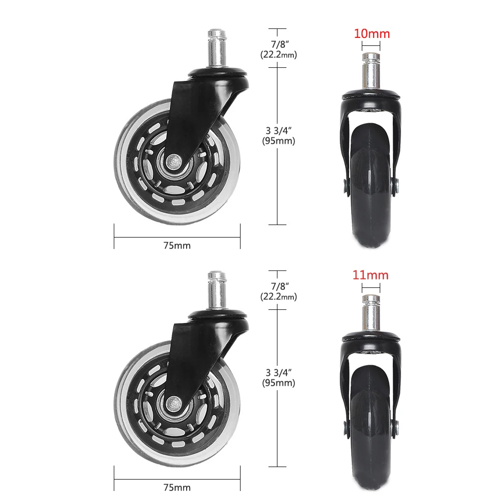 Колесики для офисных стульев, сменные колеса для вращающийся резиновый ролик 3 дюйма, мягкие безопасные, мебельная фурнитура, 5 шт.