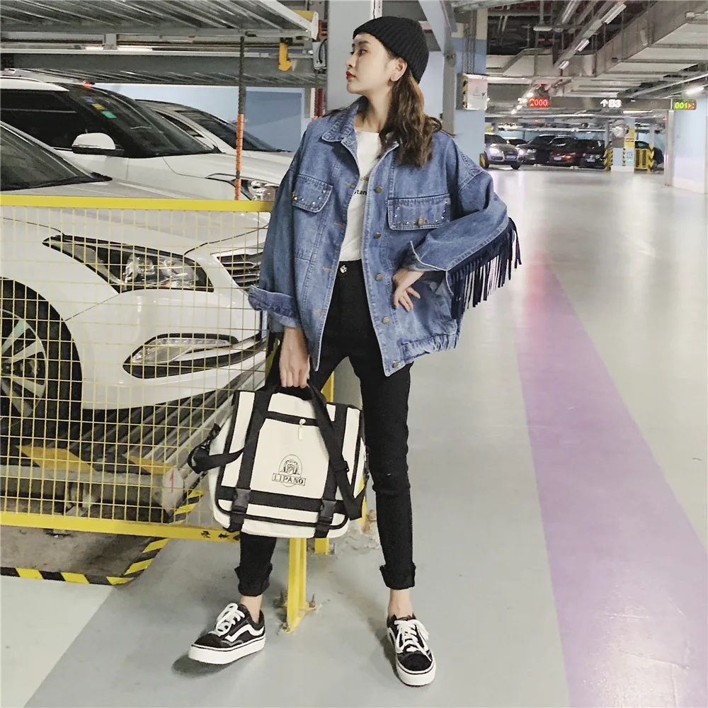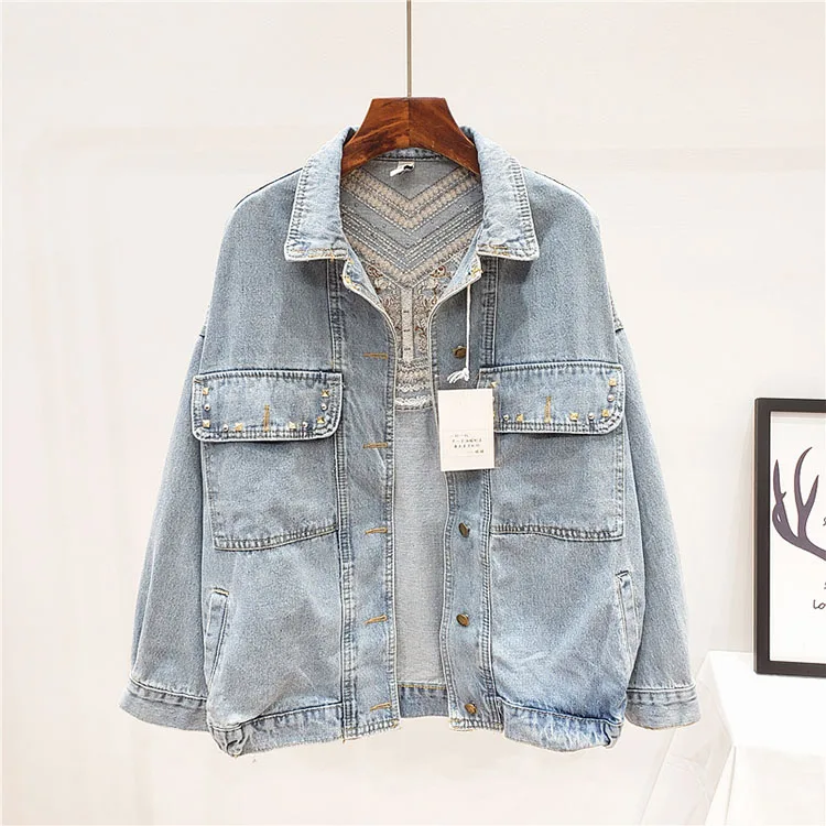 Женская джинсовая куртка с цветочной вышивкой, замшевая Свободная куртка с бахромой и длинным рукавом, верхняя одежда, уличный стиль 2021
