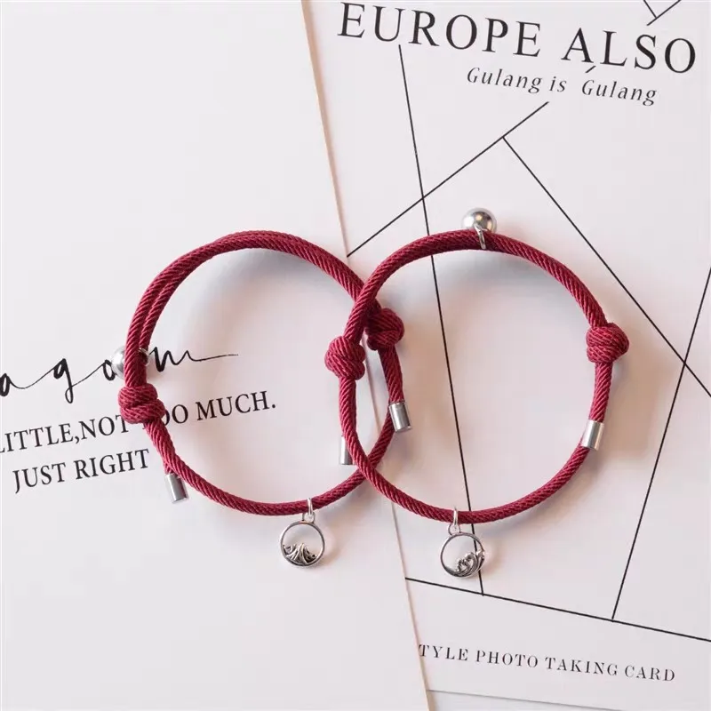 2 шт.компл. магнит притягивающий креативный парный браслет для пар для женщин и мужчин браслет на руку веревочный браслет для лучшего друга Подарочные ювелирные изделия