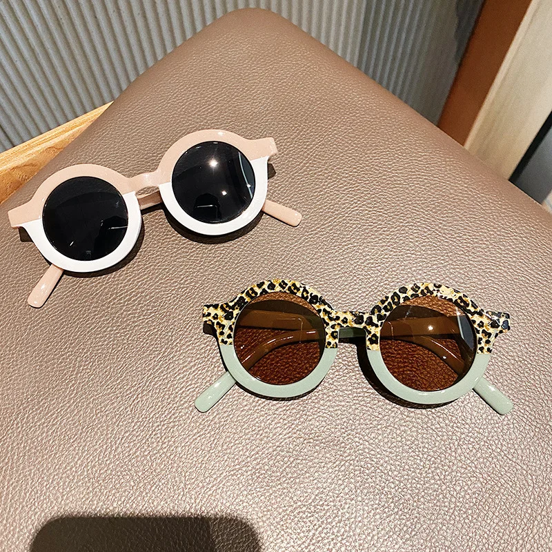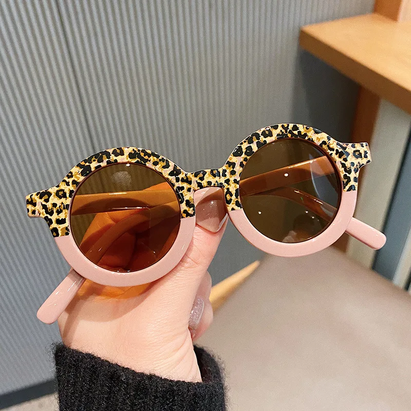 Новинка 2021, модные детские солнцезащитные очки для девочек и мальчиков, милые круглые солнцезащитные очки с розовой леопардовой оправой в двух цветах, детские очки UV400, крутые очки
