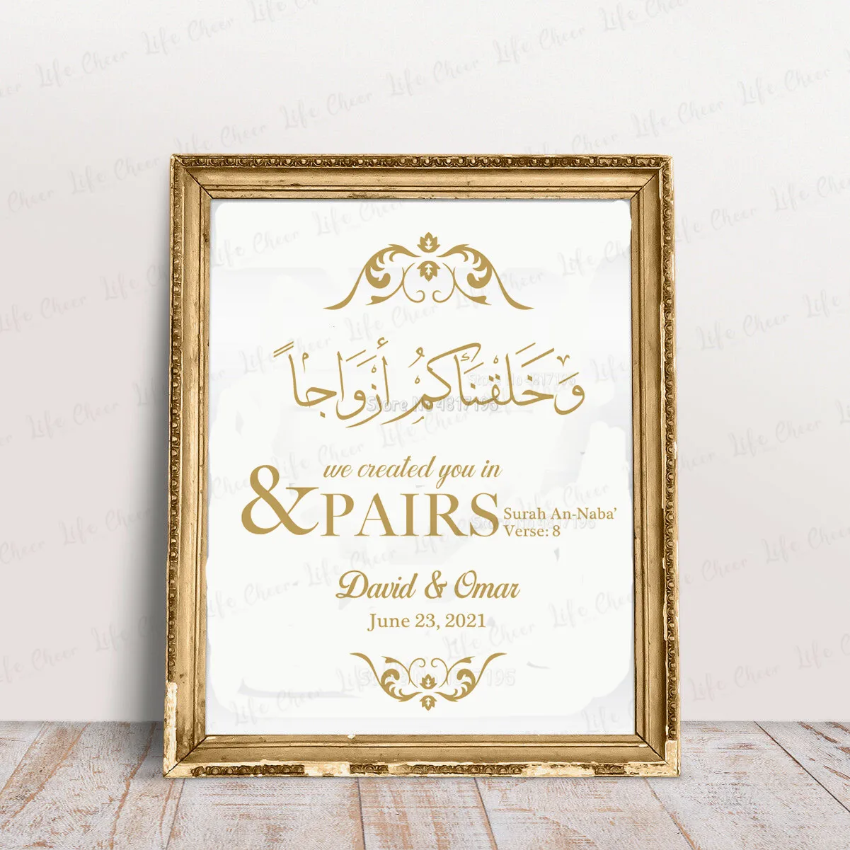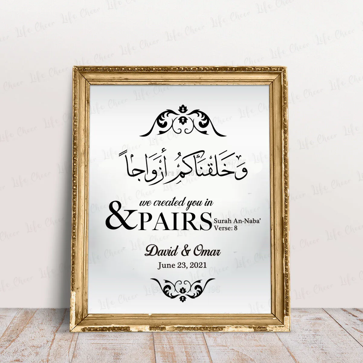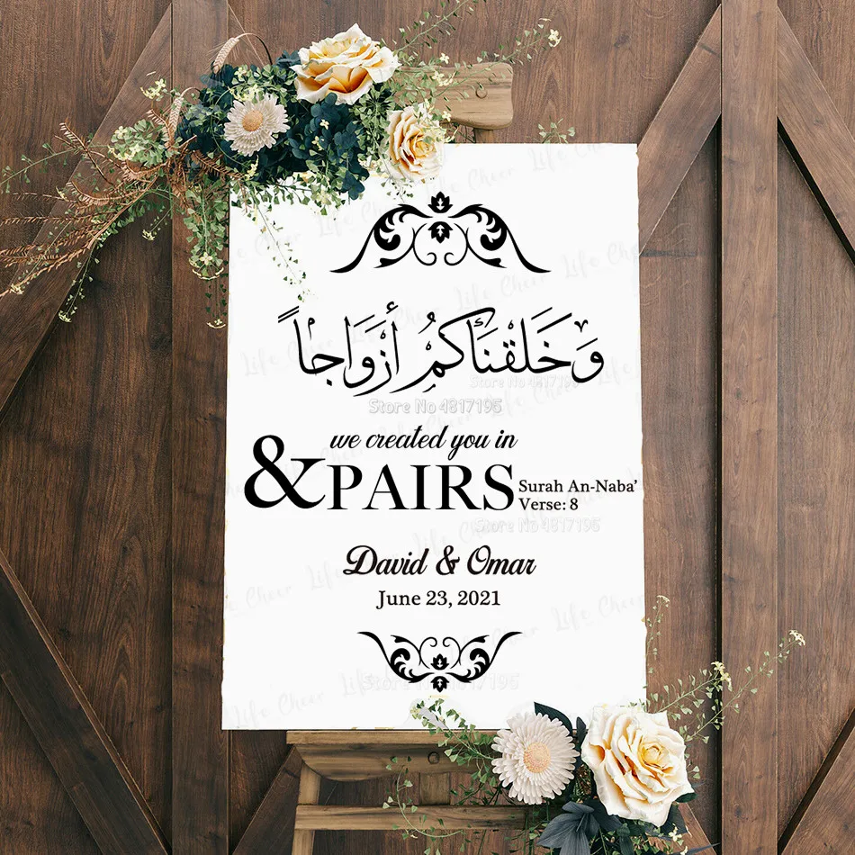Мусульманская Свадебная виниловая наклейка, индивидуальные имена пары, приветственная Зеркальная Наклейка, и мы создали для вас парные цитаты, мусульманское свадебное искусство