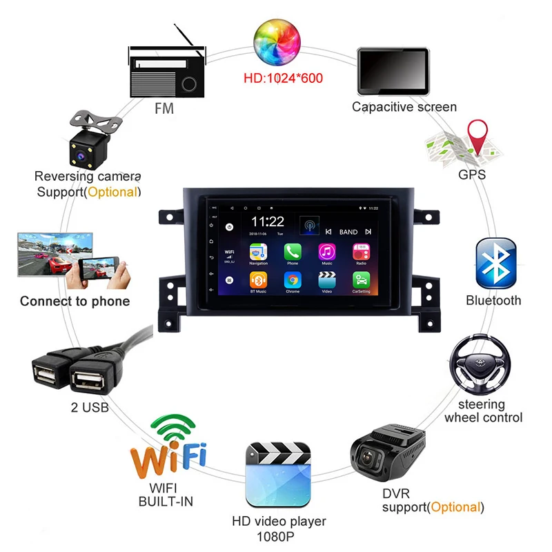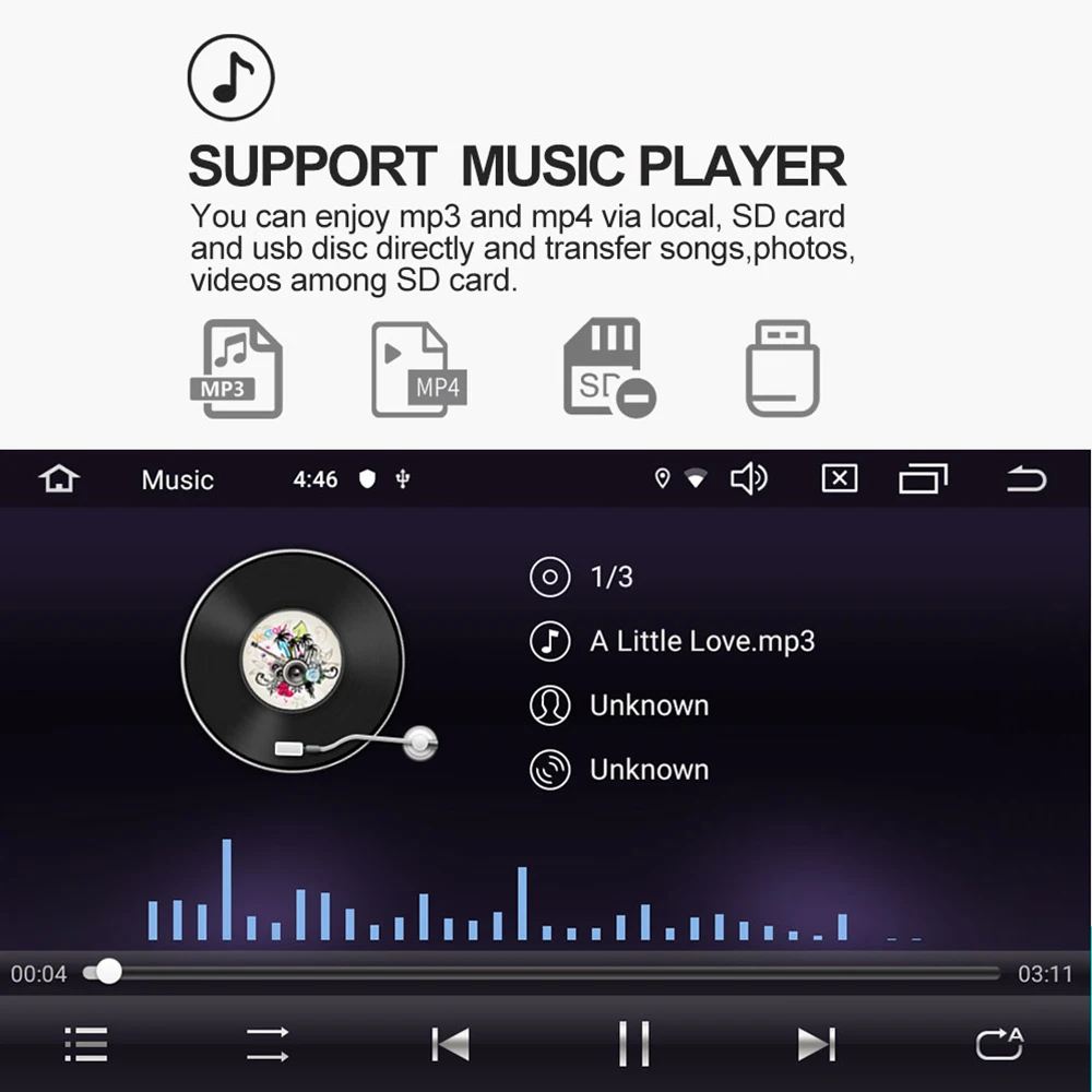 > Система Android 9,1> Чип процессора: 4 ядра> Центральный процессор основной частоты: 1,32 ГГц * 4> RAM + ROM : 2G + 16G/ 2G + 32G> Медиа Формат: AVI ASF MKV. FLV. RMVB WMV RM MP3 MP4 MOV MPEG VOB больше форматов поддержка вы можете скачать другие плееры в Google Store.> 7-дюймовый цифровой дисплей высокой четкости 1024*600> Встроенный модуль Wi-Fi, который поддерживает подключение Wi-Fi к Интернету.> Поддержка входа камеры заднего вида> Встроенный усилитель 4x45 Вт.> Радиочастотный Диапазон FM: 87,5-108 МГц> Два задних USB-разъема> Он поддерживает управление рулевым колесом> Вход/выход видео сзади> 2 CH после RCA входа> 2-канальный задний аудиовыход> 1-канальный видеовыход> Поддерживает подключение смартфона, зеркальное соединение, двойное управление> Полноэкранный емкостный сенсорный экран управления> Встроенный Bluetooth 4,0, громкая связь, телефонная книга, музыка> Поддерживает воспроизведение музыки с мобильного телефона на радио A2DP Steam> Язык экранного меню: английский, русский, немецкий, французский, итальянский, испанский, арабский, иврит, японский, чешский, португальский, румынский, турецкий, корейский тайский, латышский, испанский, итальянский, японский, китайский (традиционный), румынский, венгерский, китайский (упрощенный), корейский, шведский, украинский, хорватский, Датский, норвежский, финский, турецкий, филиппинский, португальский, литовский, 60 языков, включая Польшу, Словакию, Нидерланды и Эстонию. И многое другое> Поддержка цифрового ТВ CMMB (опционально)> Поддержка USB DVR (опционально)> Поддержка TMPS (опционально)> Поддержка OBD (опционально)> Поддержка DAB + (опционально)В комплект посылка вки входит:1 Автомобильный медиаплеер Android GPS2 usb-кабеля1 Антенна gps1 RCA-кабель1 кабельный адаптер