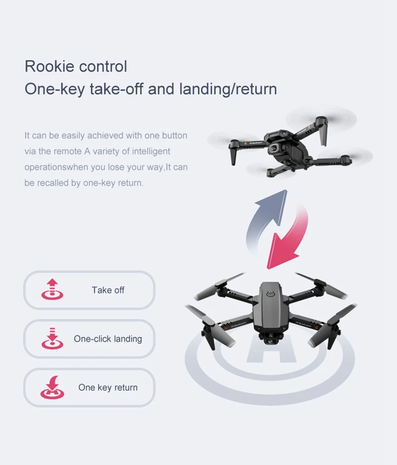 Функция s: вверх/вниз, вперед/назад, поворот влево/вправо, боковой полет, светодиодные фонари, Безголовый режим, автоматический возврат одной кнопкой, режим удержания высоты, wiFi FPV (двойной объектив с функцией переключения двойного объектива)