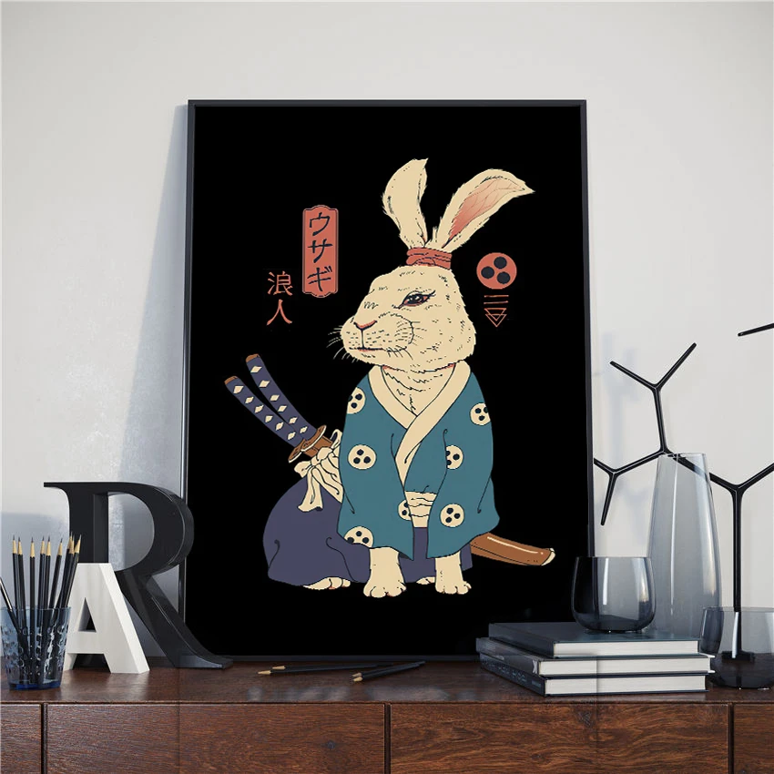 Японская мультяшная картина самурая кошка плакаты животные картины на холсте настенное искусство для дома украшение для спальни без рамки