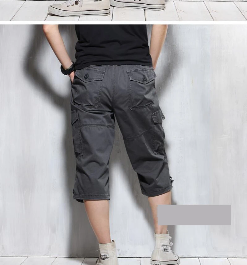 Шорты-карго мужские с множеством карманов, свободные Бриджи на молнии, повседневные хлопковые черные длинные брюки цвета хаки, серый цвет, лето