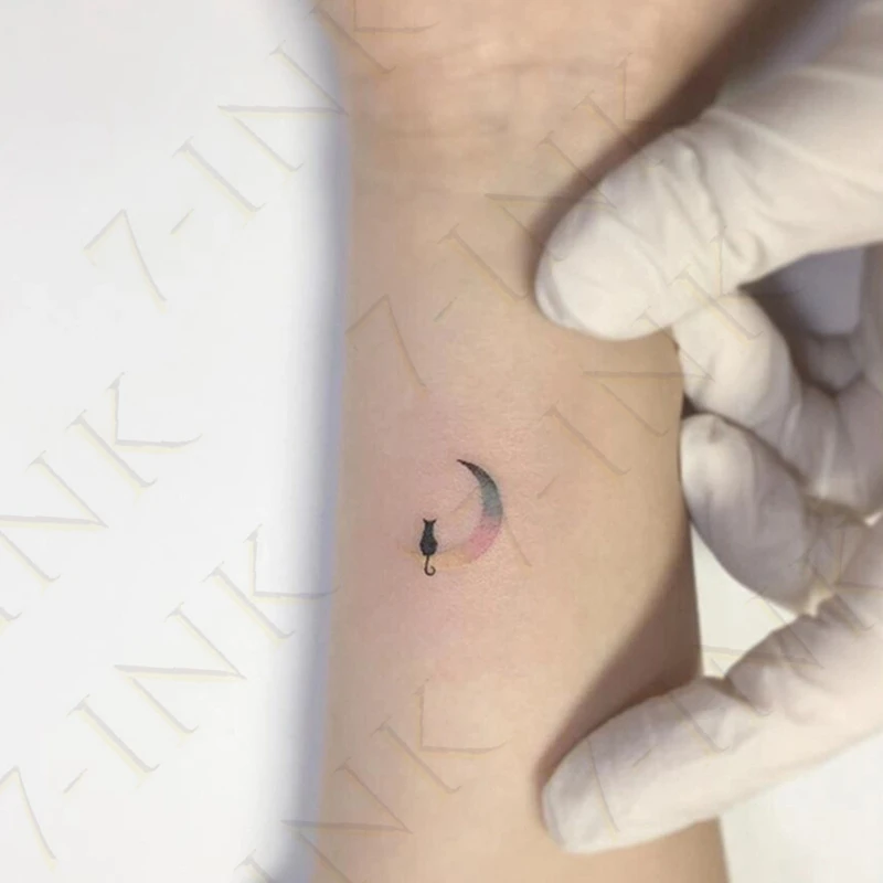 Водостойкая временная татуировка, Милая луна, кошка, слон, самолет, искусство переноса воды, искусственная татуировка, флэш-тату 10,5*6 см для мужчин и женщин
