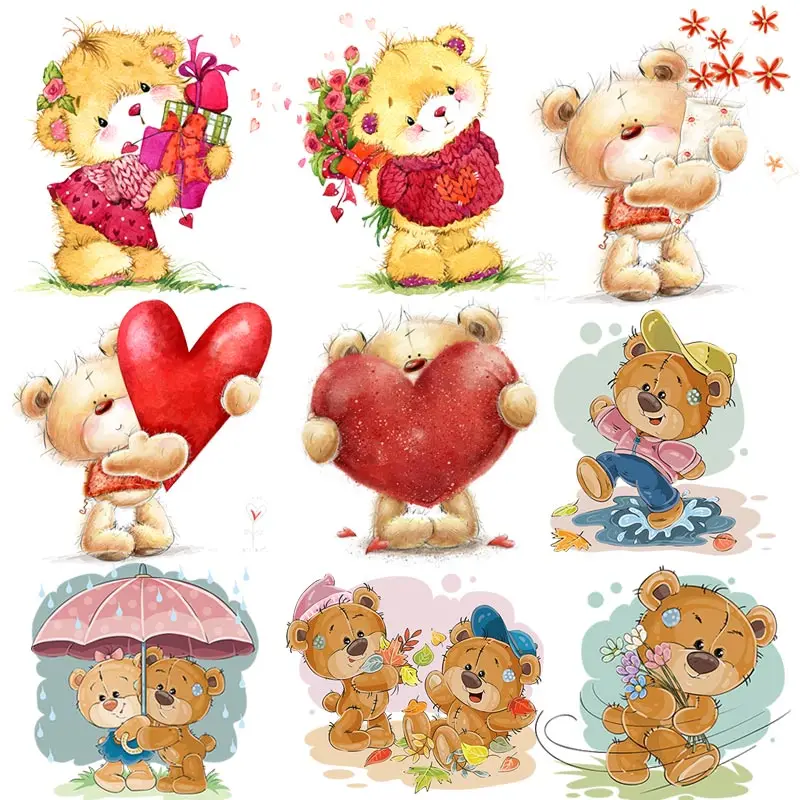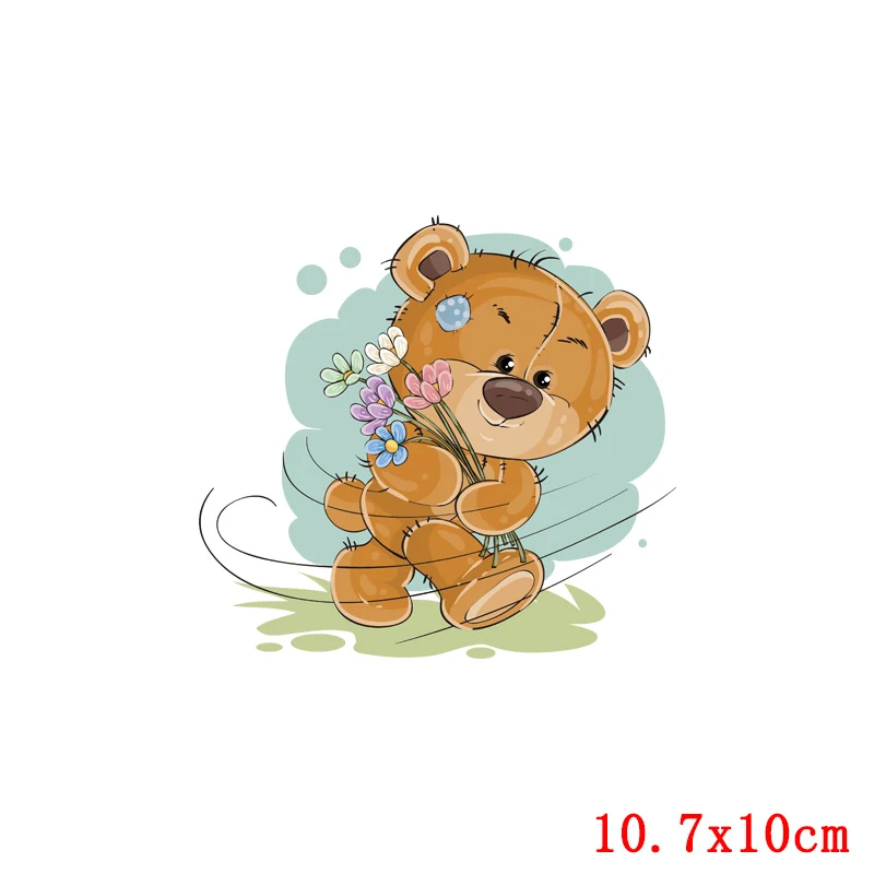 Мультяшный медведь, животные, утюжок, накладки на одежду, милые маленькие животные, термо-наклейки на одежду, аппликация в полоску
