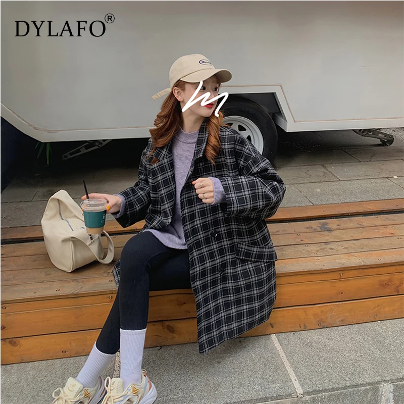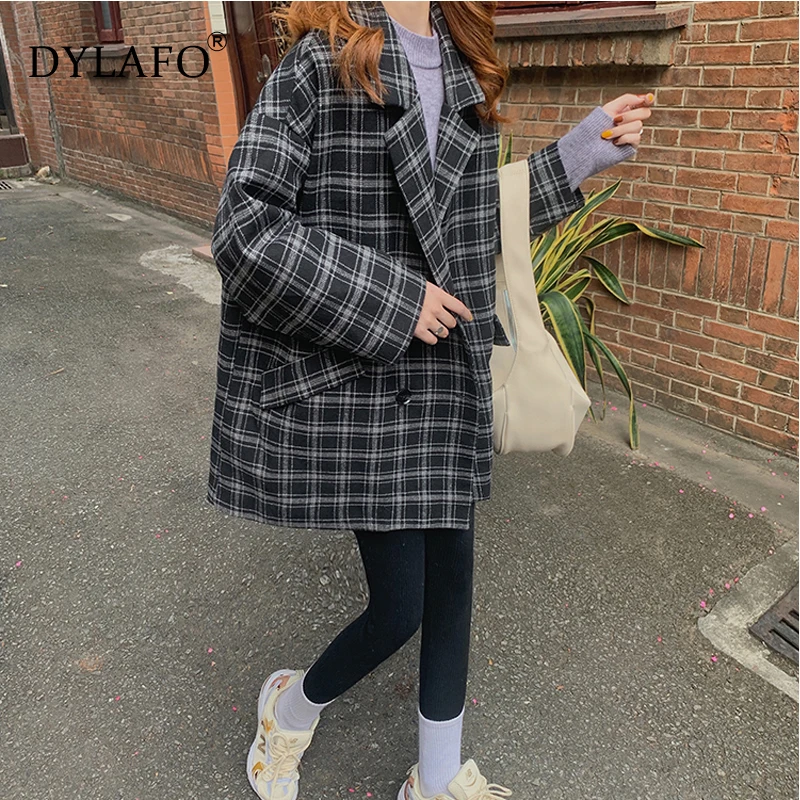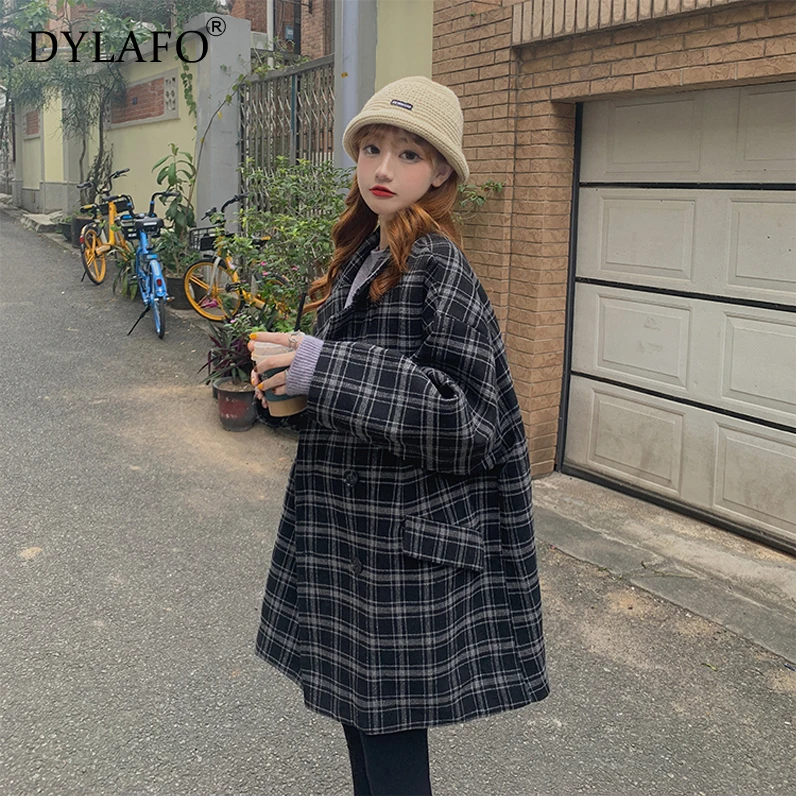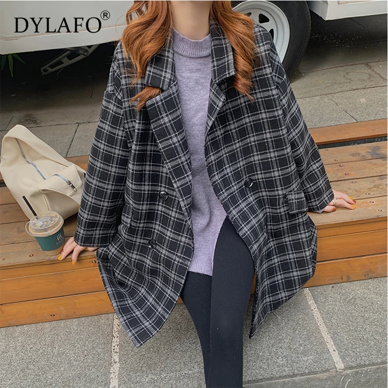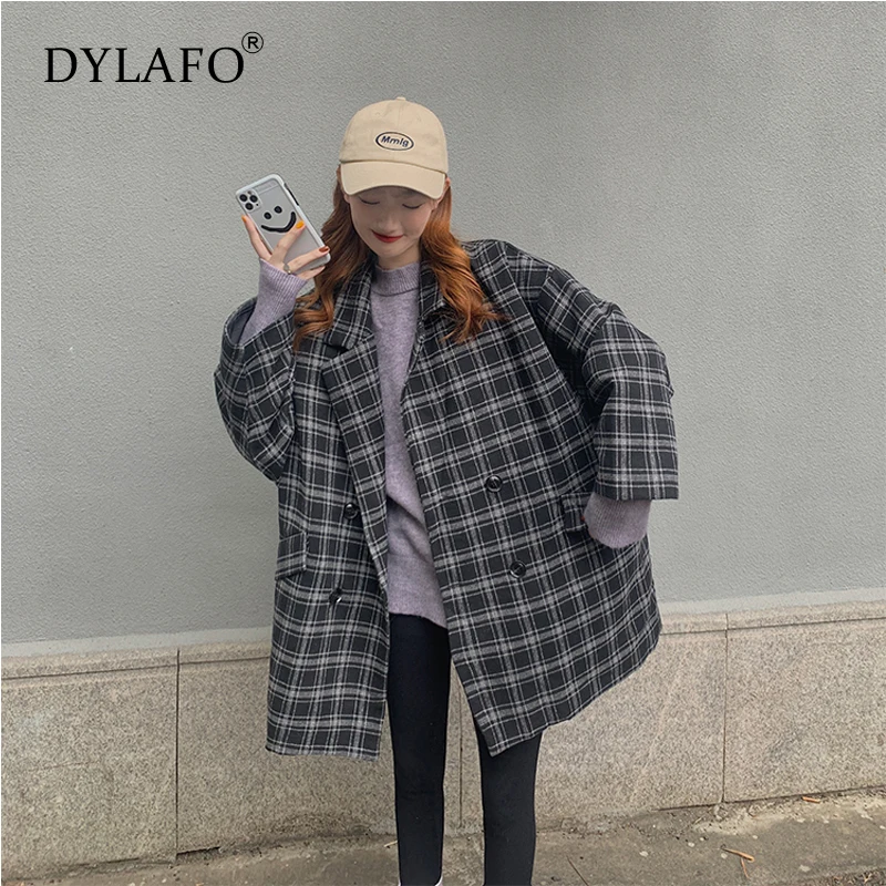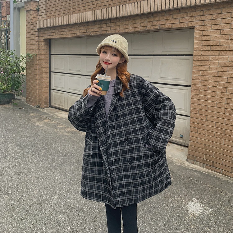 Новинка 2020, серые осенне-зимние женские блейзеры, клетчатые двубортные Формальные куртки с карманами, клетчатая верхняя одежда, топы, Костюмные куртки