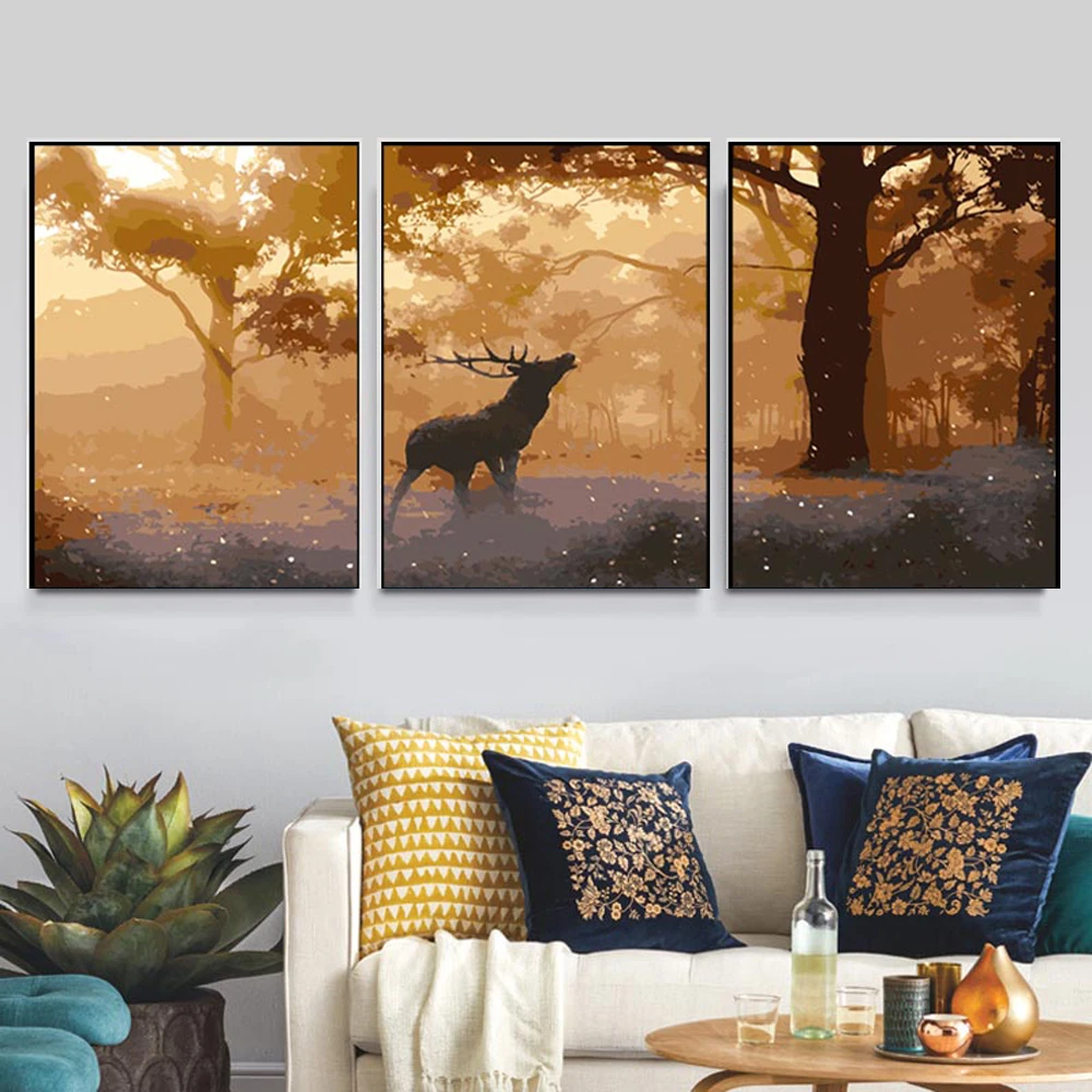 Триумф, комплект из 3 предметов с изображением оленя: сделай сам масляная Краски ing по номерам животных Триптих Вышивка крестом картины раскраски абстрактные Краски стены Стикеры Декор для дома подарок