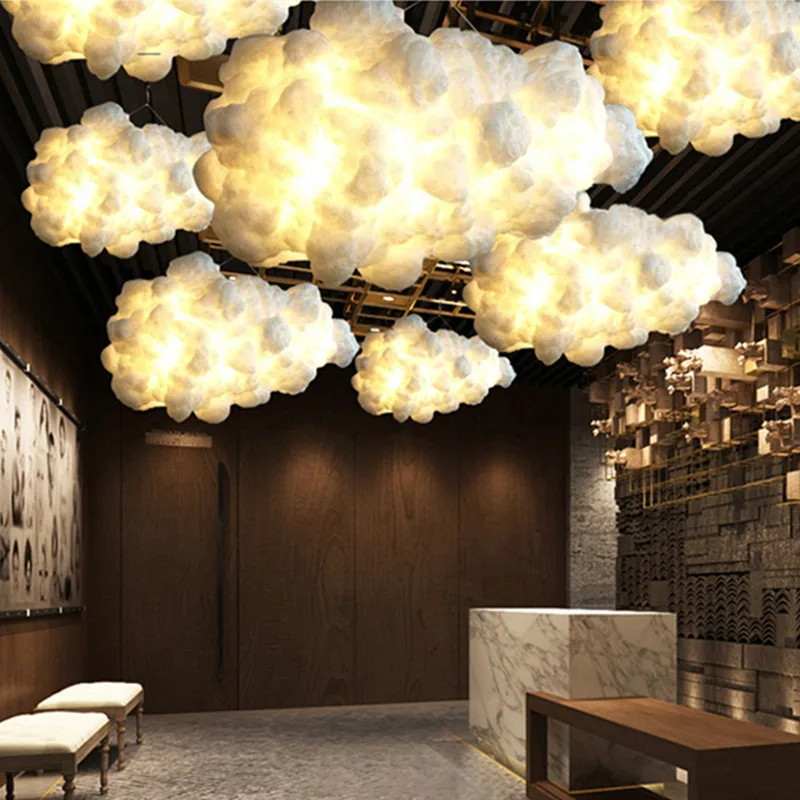 Плавающие оссветильник ительные приборы в виде облака, искусственный шелк, хлопок E27, светодиодные подвесные осветительные приборы в виде облака для кофейни, искуссветильник