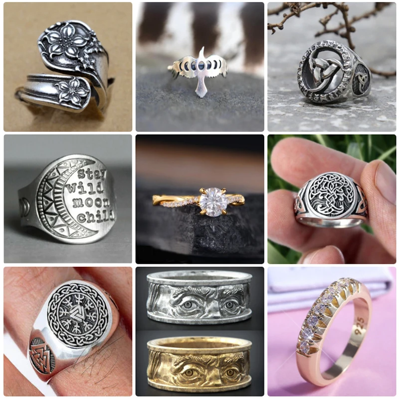 Парные кольца в виде птицы, бабочки, динозавра из нержавеющей стали