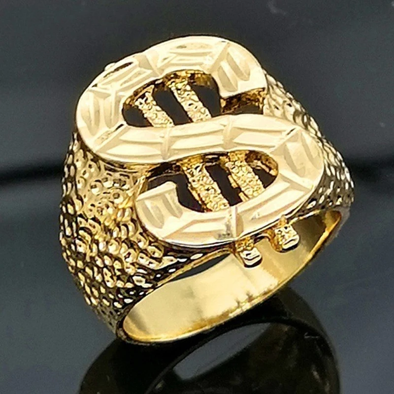 Золото Цвет кольцо Знака Доллара для мужчин в стиле хип-хоп, рок-н-...