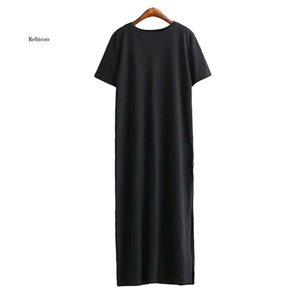 Футболка женское летнее Повседневное платье повседневное Бохо пляжное платье в винтажном стиле; Пикантные вечерние элегантное облегающее черный, Белый Цвет Хлопок Длинные платья размера плюс